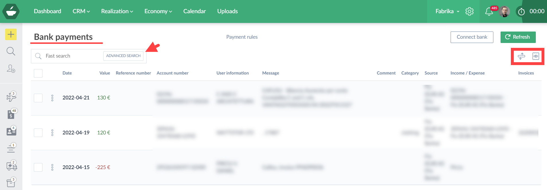 In the Bank payments overview you will see all imported transactions. You can work with filters or export data.
