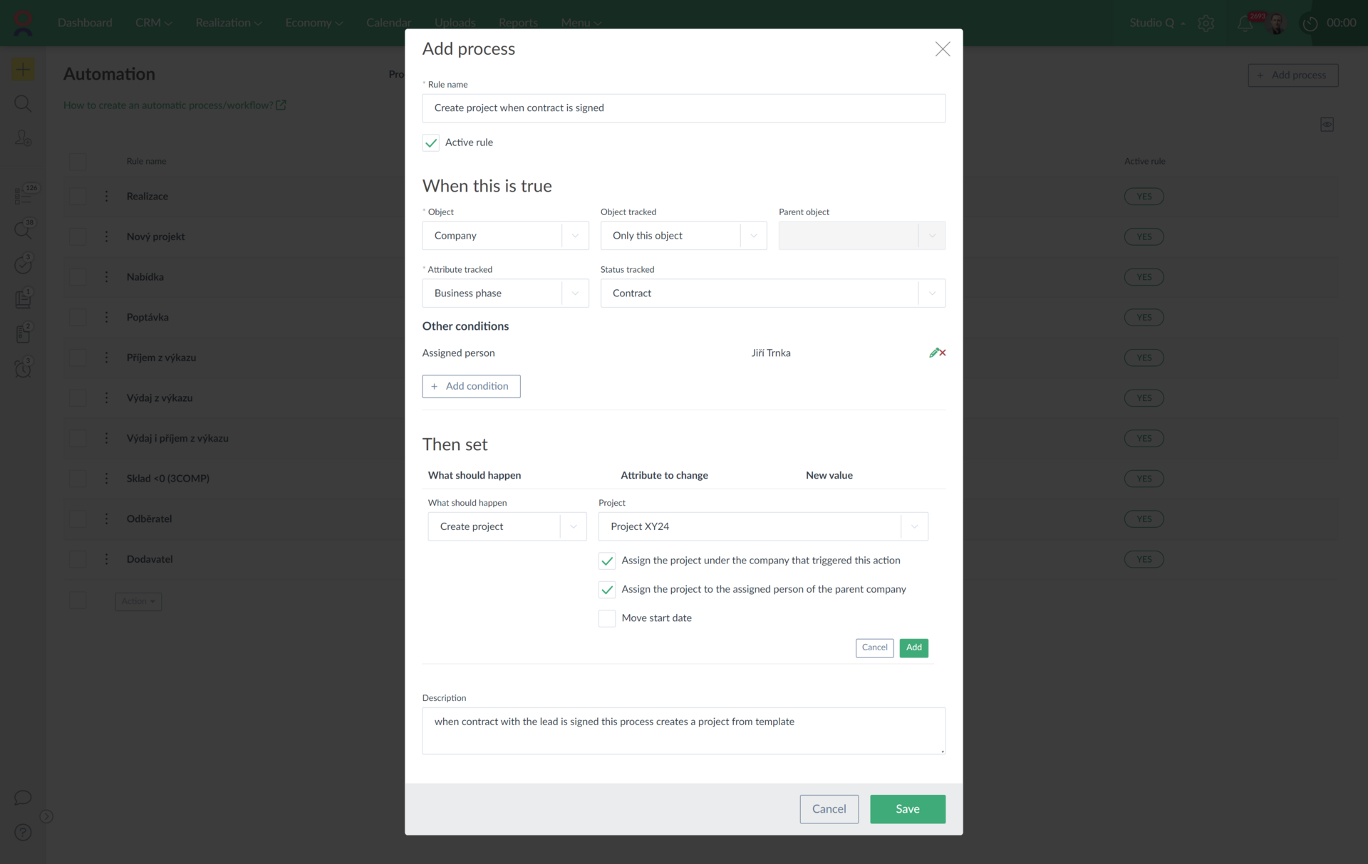 Caflou allows you to easily set up your own automatic business processes and create projects or tasks from ready-to-use templates